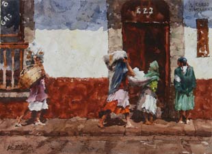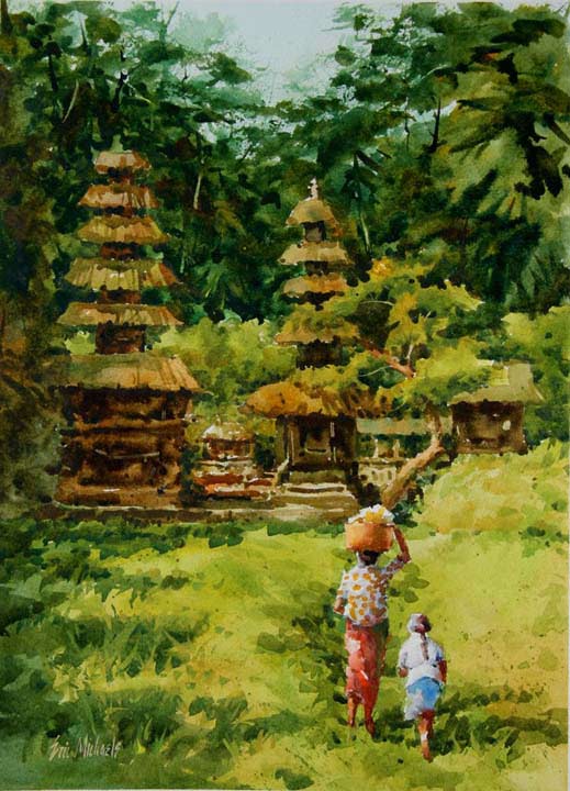 I think my watercolors most strongly reflect my love of travel, and the exotic. My studio shelves contain dozens of sketchbooks full of watercolors that I have painted in countries all over the world. They serve as a constant inspiration and a reminder of the places I've been fortunate enough to experience."