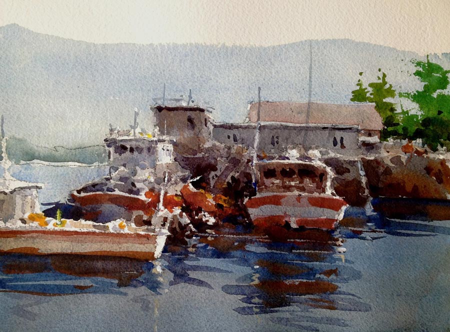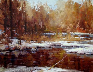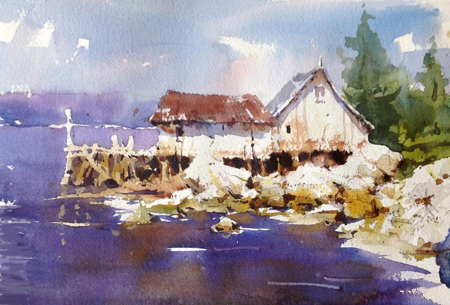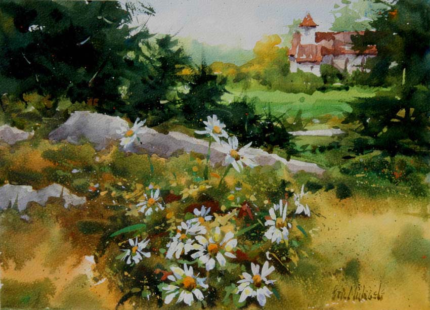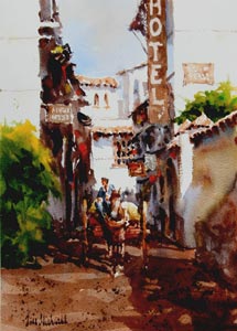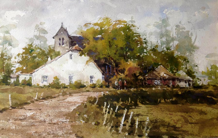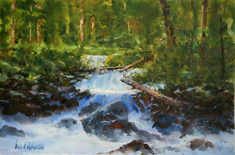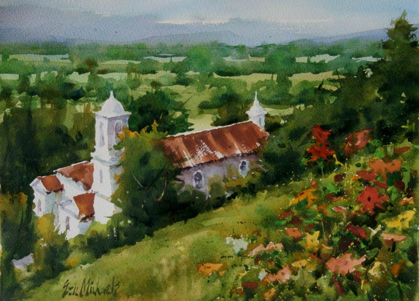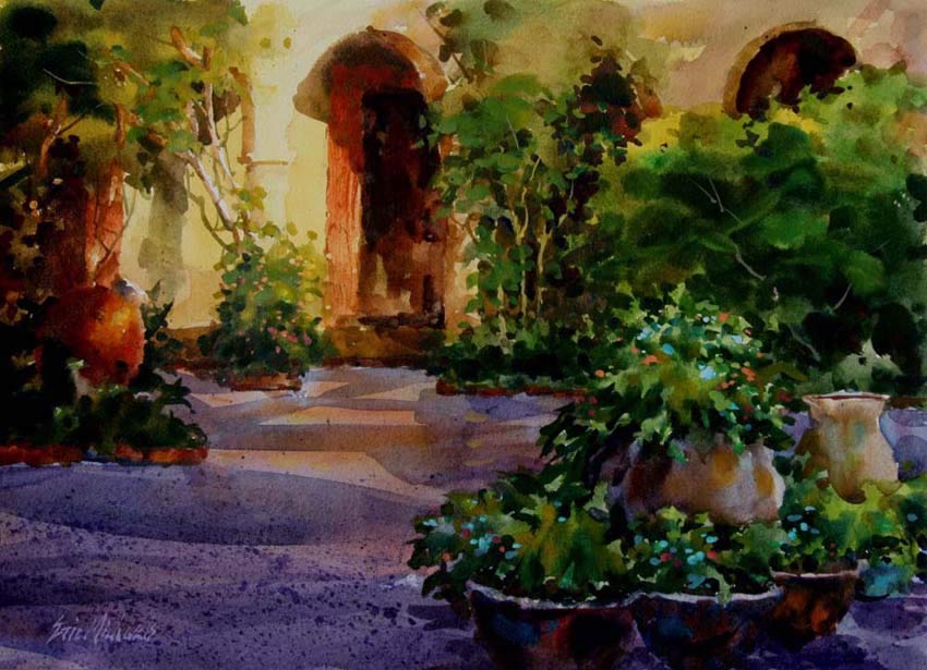 "Of all the mediums, watercolor is the most idiomatically unique. After all, the vehicle used to move the pigment is water. And, what is more “Zen”- like and quixotic than water? A good watercolorist learns to give up his ego to the medium. He draws and plans, but, in the execution of the painting, he is prepared to allow the water to take him in directions that he could never have dreamed of.